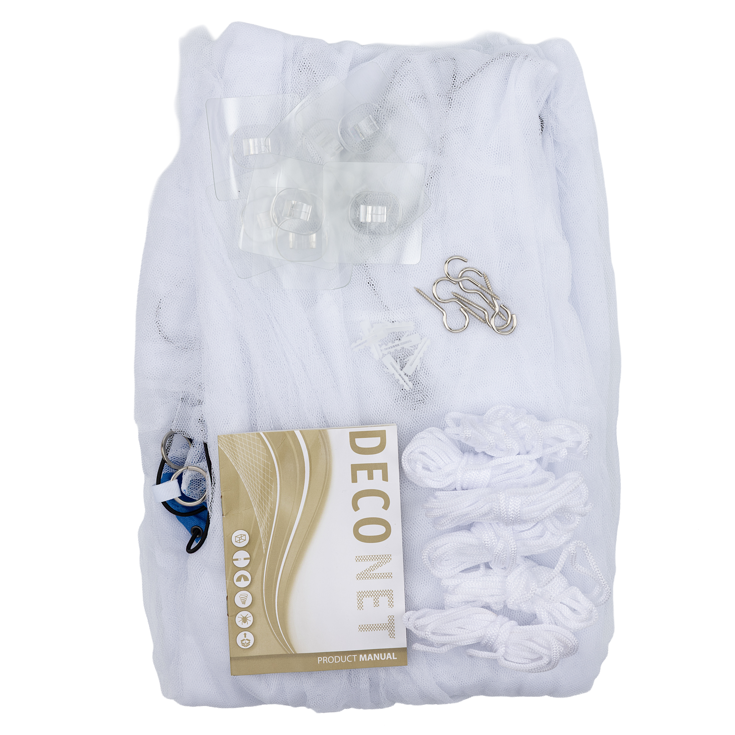 Le matériel de fixation est inclus ainsi qu'un sac de rangement pratique pour que vous puissiez ranger la moustiquaire proprement et en toute sécurité pour le prochain emplacement ou le prochain voyage.