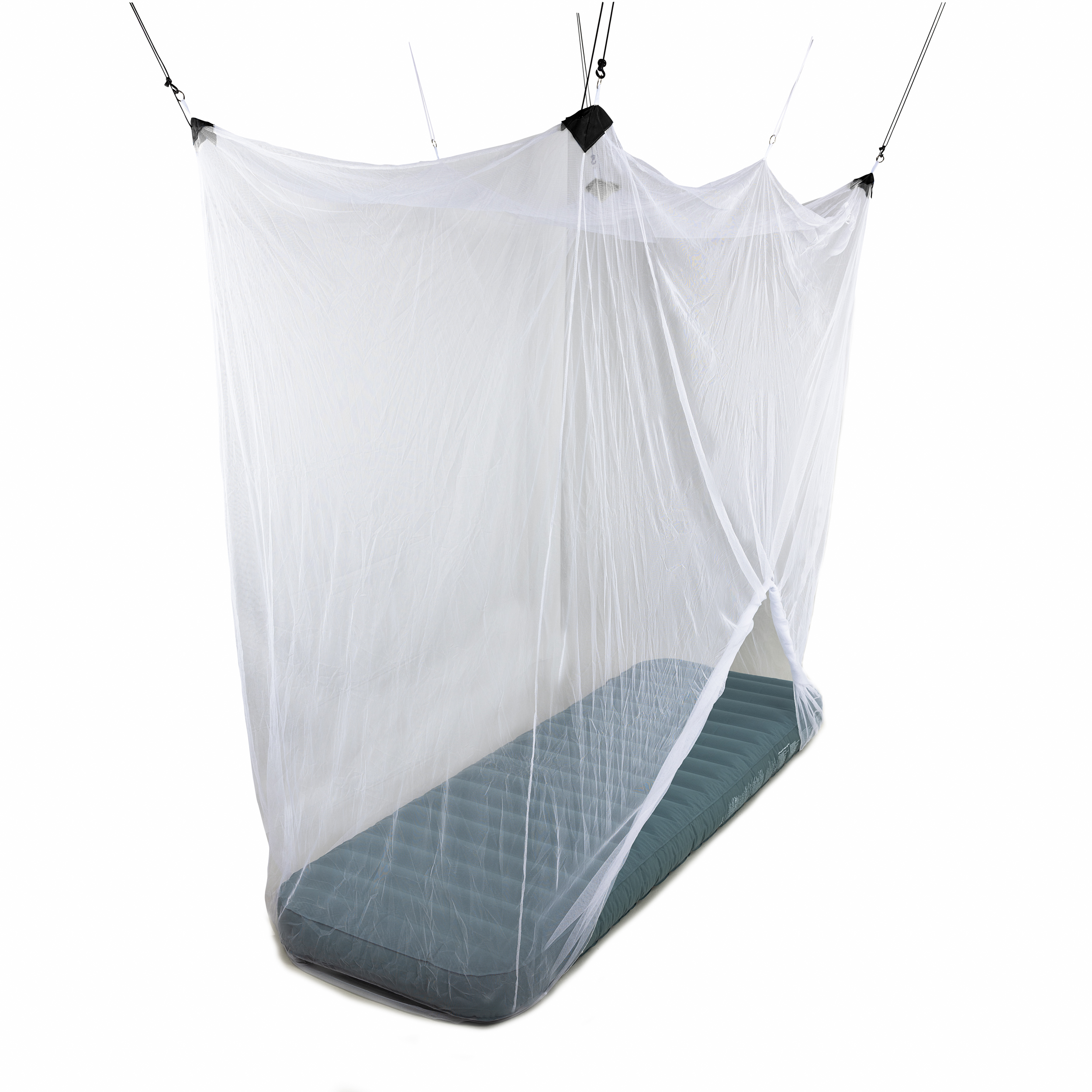 La moustiquaire s'adapte parfaitement à un lit, un matelas ou un matelas pneumatique et dispose de bords renforcés pour bien se fixer sur le matelas ou le matelas pneumatique. Un matelas ou un matelas pneumatique de 100 cm de large et 200 cm de long s'adapte facilement dans la BOX ONE PURE.