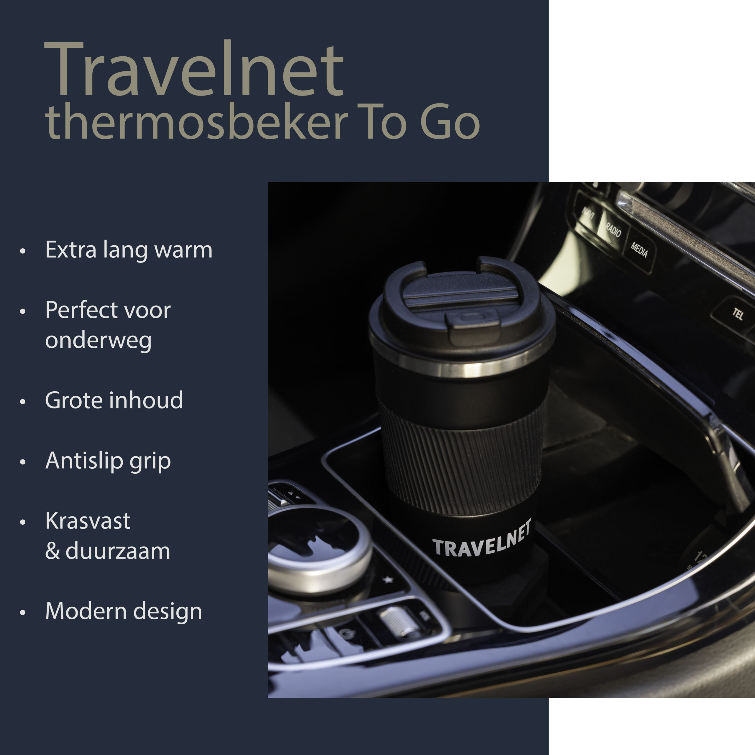 Thermos Travelnet – tasse à café pour les déplacements – tasse de voyage pour café et thé – 380 ml – acier inoxydable