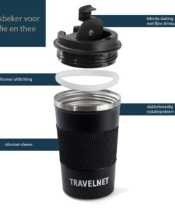 • Thermos Travelnet – tasse à café pour les déplacements – tasse de voyage pour café et thé – 380 ml – acier inoxydable